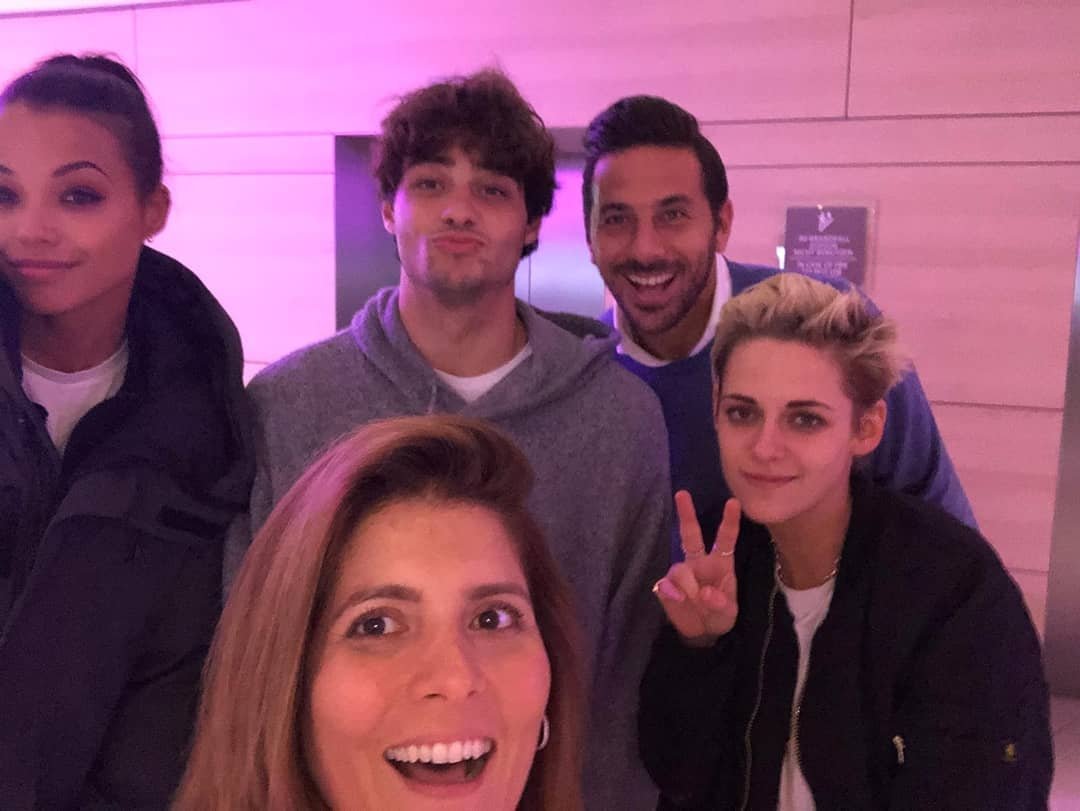 Foto da Kristen com Ella Balinska, Noah Centineo e o jogador Claudio Pizarro
