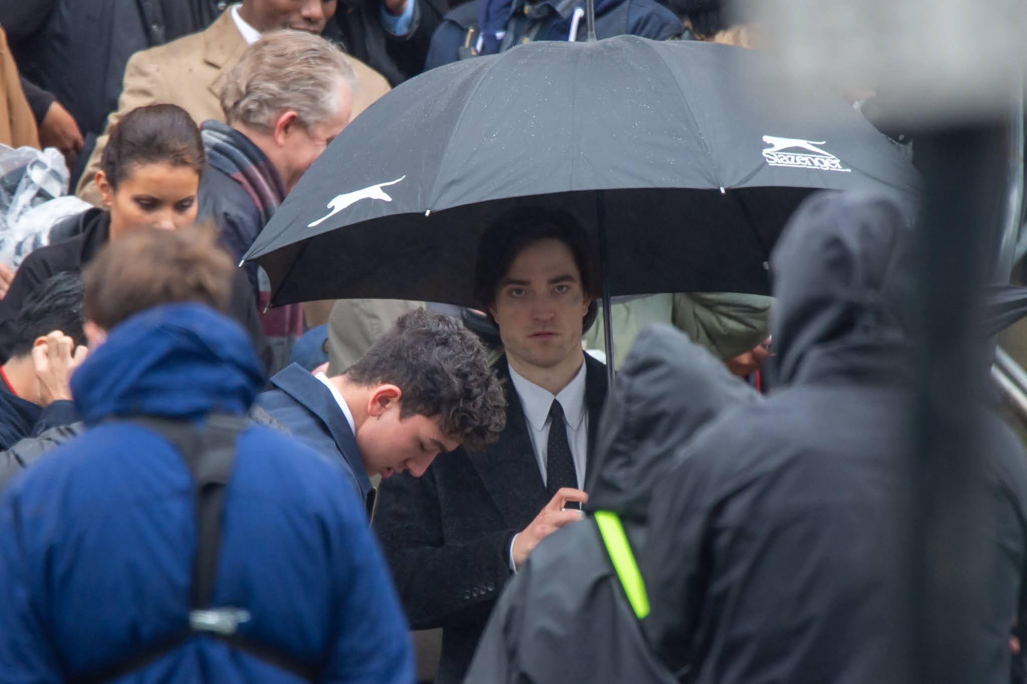 As gravações de The Batman retornaram hoje e o ator Robert Pattinson foi visto hoje no set em Liverpool para filmar uma cena de funeral. Lembrando que The Batman foi adiado mais uma vez e só estreia dia 04 de março de 2022. Confira abaixo fotos do Robert no set: