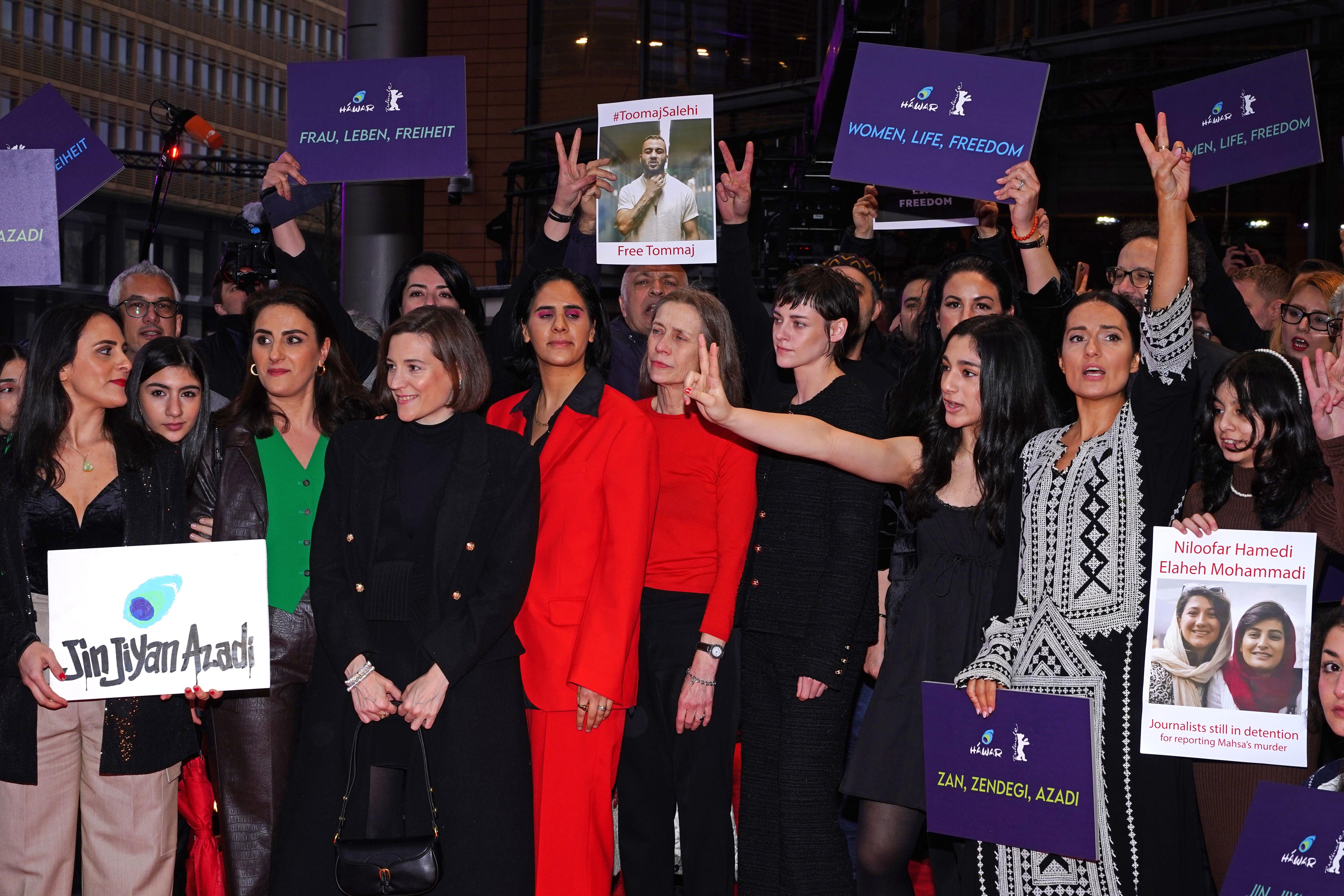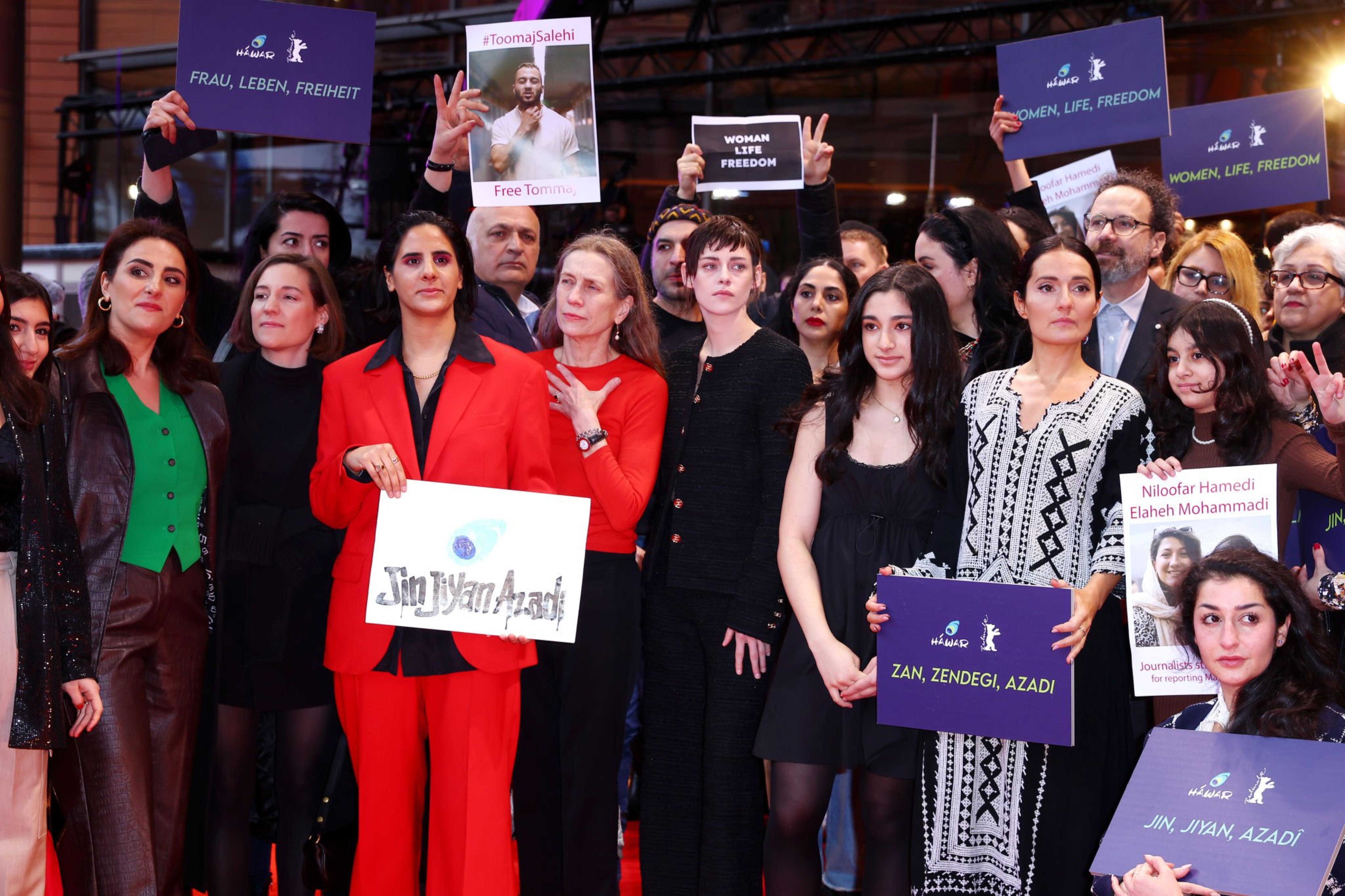 Kristen Stewart participa de protesto em solidariedade ao Irã no Berlinale (18/02/2023)